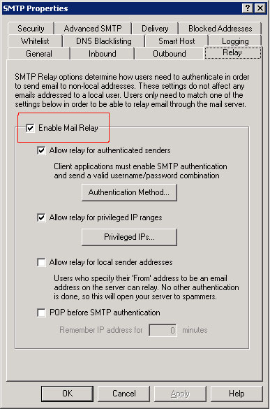 MailEnable > Mailenable Administrator > Servers > Localhost > Connectors> SMTP > Properties > Relay > Enable Mail Relay