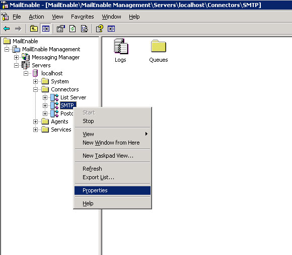 MailEnable > Mailenable Administrator > Servers > Localhost > Connectors> SMTP > Properties > Security