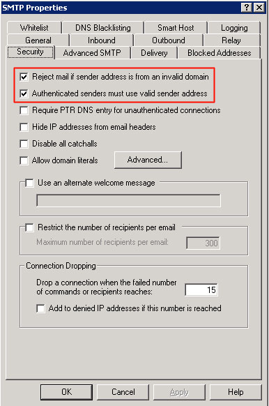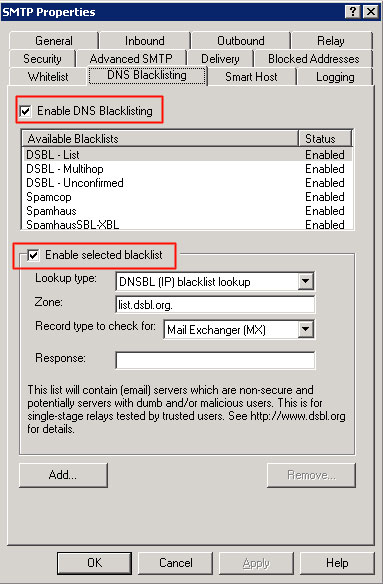 این تنظیمات به منظور جلوگیری از قرار گرفتن Mail server در Black list ها و هم چنین بهبود سرویس Mail server از طریق کاهش تعداد هرزنامه ای دریافتی و block کردن سرورهای فرستنده هرزنامه می باشد.